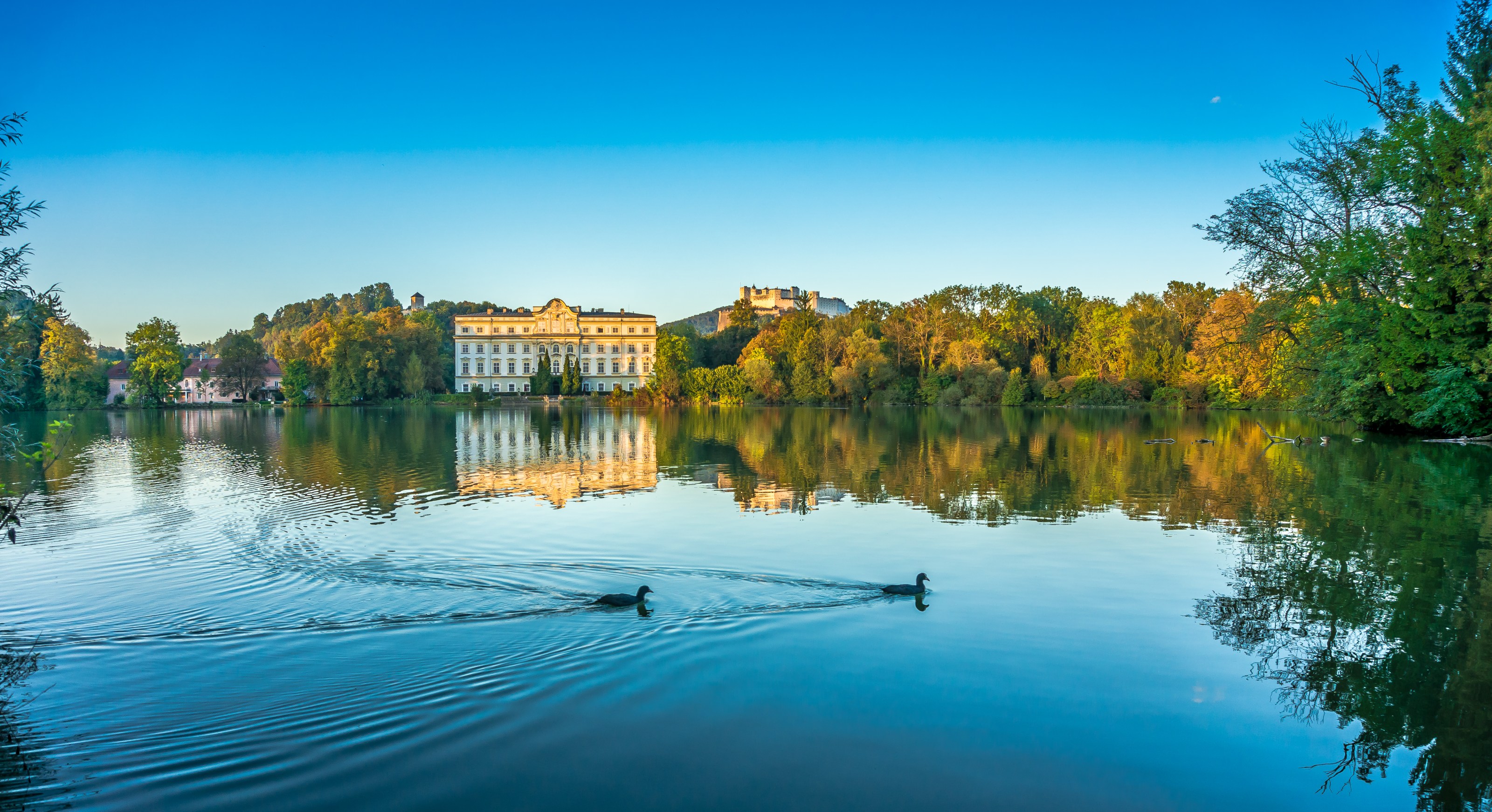 - Schloss Leopoldskron can only be viewed from across the Leopoldskroner Weiher (pond) as it operates as a private hotel.